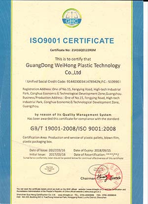 GZPL is always adhering to the principle of honesty, win-win cooperation and striving to provide customers with professional products and services. Now "Pearl River” plastic pallet has been a  Famous Brand of Guangdong and "Sui Hua" plastic film has been a "Guangzhou famous brand". GZPL has had 20 utility model patents, 3 invention patents. Its subsidiaries Guangdong Weihong Plastics Technology CO.,LTD and Guangzhou Rodman Plastics CO.,LTD. have been identified as "High-tech Enterprise". And Weihong Technology has been identified as "China Plastic Pallet Standardization Production Bases", the only one plastic pallet manufacturer that is granted this honor in Southern China, and it finally registers the trademark of "Weihong" successfully.