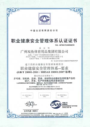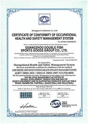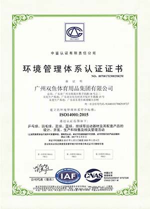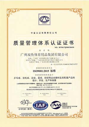 The company is one of the largest producers of sports supplies and equipment in China, whose main products include Double Fish table tennis sports supplies, Jinque badminton, Long Rainbow football, basketball and volleyball, Double Fish sports wears and all sorts of bags and cases and group sports supplies. The company has passed the certification of ISO9001 quality management system, ISO14001 environment management system and OHSMS18001 occupational health and safety management system. The company has led and participated in the formulation of 63 national standards, industrial standards and enterprise standards concerning sports equipment. In 2016, Double Fish Group was certified by the General Administration of Sports of China as a National sports industry demonstration unit for sports industry. The company has successively won honors such as a Well-known trademark of China, a Time-Honored Brand of Guangdong, a Time-Honored Brand of Guangzhou, a Guangdong High-Tech Enterprise, a Famous Trademark of Guangdong, Top 100 Enterprises Of China and an exemplary enterprise for independent innovation of the province.