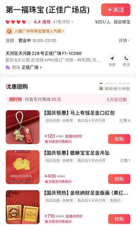 大新公司主动出击,深拓客户资源,构建多元业务增长矩阵。一方面,线下重点攻克大客户市场,活用红联共建形式,以党建“朋友圈”延伸业务“合作圈”,成功开拓十余家优质新客户,黄金珠宝与工美文创机团渠道业务营收分别实现同比9%和14%的稳健增长,标签印制业务营收同比增长2倍。另一方面,发力数字化营销链路,积极布局内容电商本地生活团购赛道,通过线上直播、优惠券精准投放等方式,构建“线上引流+线下消费”的闭环生态。三季度本地生活平台GMV达2622万元,核销率超64%,吸引超5000名消费者到店消费;黄金线上业务销售收入突破亿元大关,同比增长81%。借助小红书平台大力“种草”,工美文创线上业务销售收入同比增长49%。